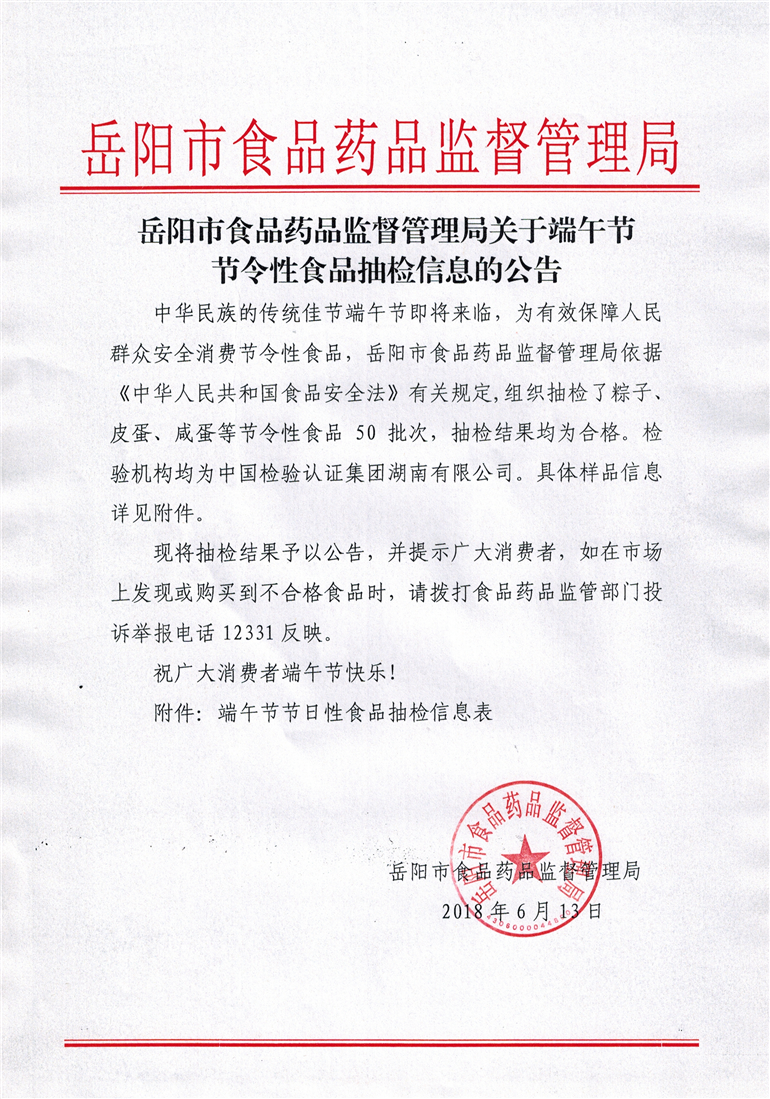 28365-365关于端午节节令性食品抽检信息的公告