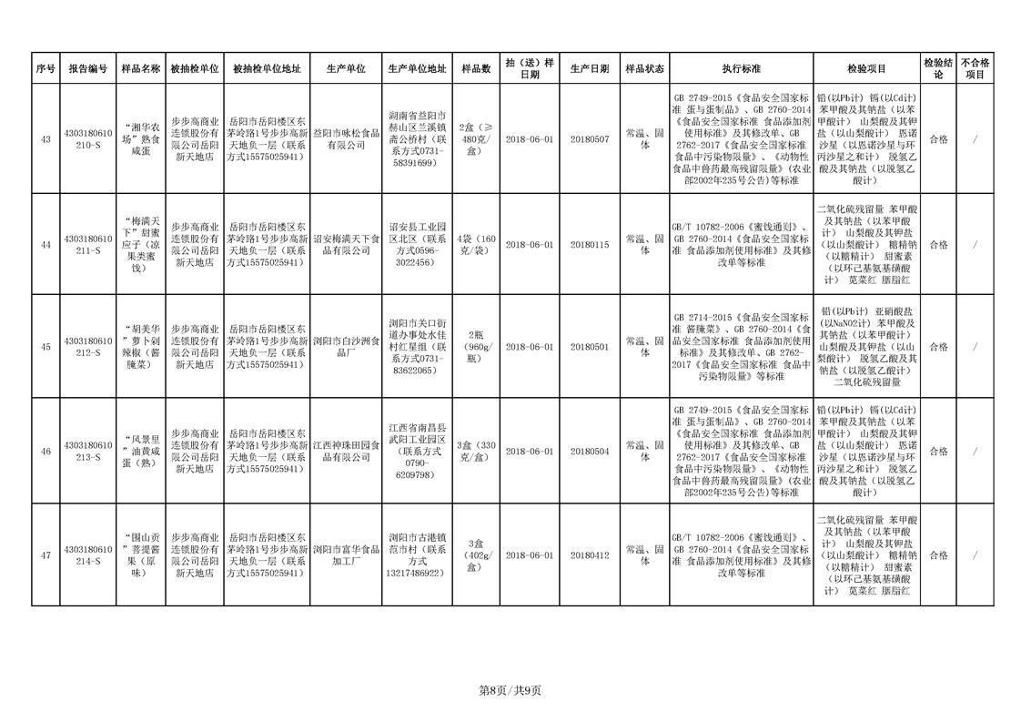合格产品信息公示