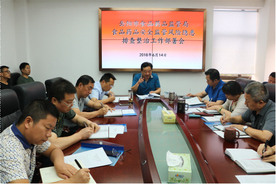 6月14日下午,岳阳市食品药品监管局召开紧急会议,迅速部署食品药品安全监管风险隐患大排查大整治工作。各县市区食品药品监管部门分管副局长、业务股长、岳阳市局各业务科室负责人参加了会议。