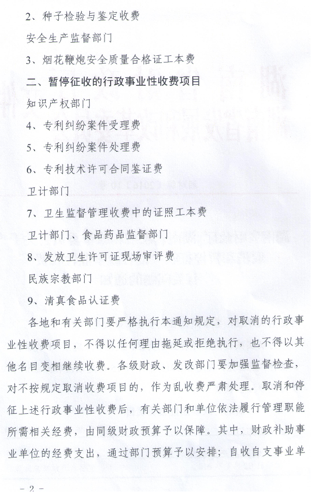 关于取消和暂停征收一批行政事业性收费有关问题的通知